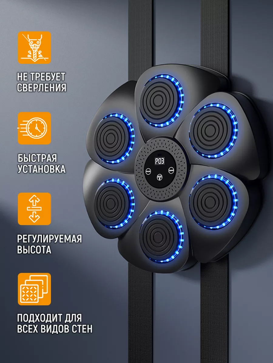 Музыкальный боксерский автомат — это идеальное решение для домашних тренировок, позволяющее сочетать физическую активность с элементом развлечения. Благодаря модернизированному световому кольцу, вы можете наслаждаться захватывающей тренировкой, в которой синхронизированные схемы освещения создают визуально потрясающие впечатления.